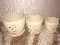 Набор цветочных горшков из 3штук керамика новый) +7918172368 . Объявления Россия, Краснодарский край, Армавир