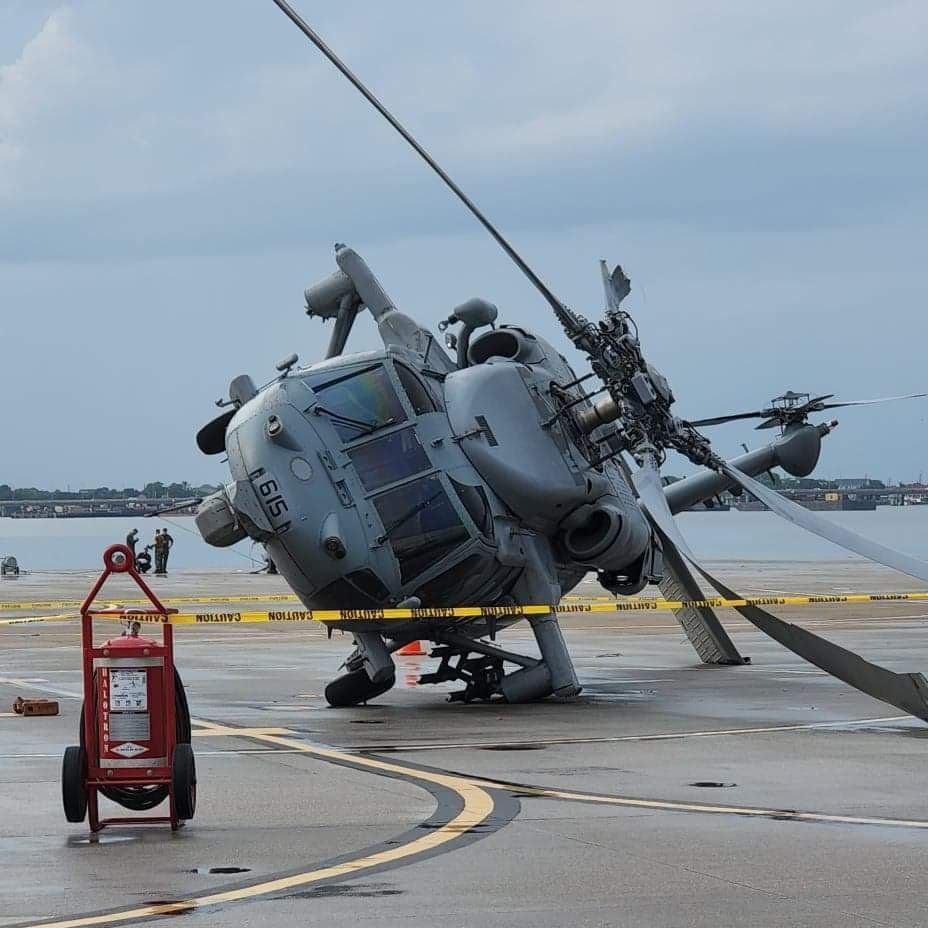 Сразу 10 вертолётов ВМС #США на военно-морской базе Норфолк (штат Вирджиния) получили повреждения в результате ураганного ветра.