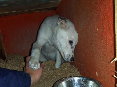 Кто-то избавился от девочки красавицы. Она ещё щенок, ей около 4-5 месяцев. Она бездомная, но живёт в старой будке моего пса, которую я привёз специально для неё. Кормлю по возможности хотя бы раз в день, но продолжаться так долго не может, рано или поздно её могут выгнать оттуда, а забрать себе не можем, так как уже имеются две собаки. Девочка около месяца привыкала ко мне, не подпускала, скулила, лаяла и забивалась в угол от страха, видимо её сильно обижали (